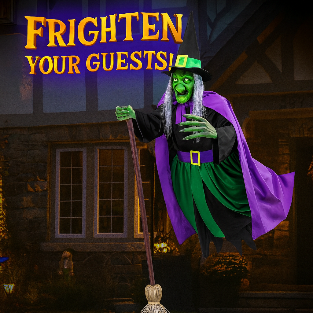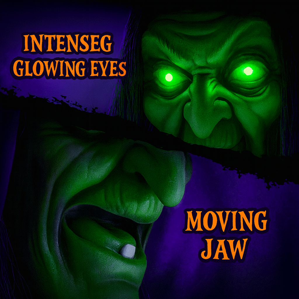 👉 This witch is different. She responds to people. Walk too close, make a noise, and suddenly her glowing eyes ignite, her jaw opens with a scream, and she lunges forward like she’s alive. It’s not a decoration—it’s an experience. The kind of scare people will talk about for weeks.